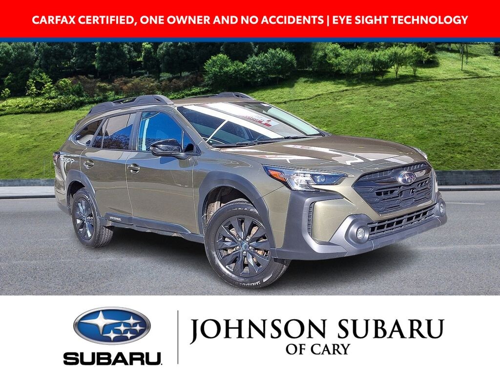 Autumn Green Metallic 2023 Subaru Outback Onyx Edition AWD CVT Lineartronic 2.5L 4-Cylinder DOHC 16V CARFAX CERTIFIED, ONE OWNER AND NO ACCIDENTS, EYE SIGHT TECHNOLOGY, LANE KEEP, REAR CROSS TRAFFIC ALERT, BLIND SPOT TECHNOLOGY, ADAPTIVE CRUISE CONTROL, POWER REAR TAIL GATE, LED STEERING RESPONSIVE HEADLIGHTS WITH HIGH BEAM ASSIST, APPLE CAR PLAY!, HEATED FRONT SEATS, HEATED LEATHER SEATS, H4, AWD, NEW TIRES, BACKUP CAMERA, BLUETOOTH.