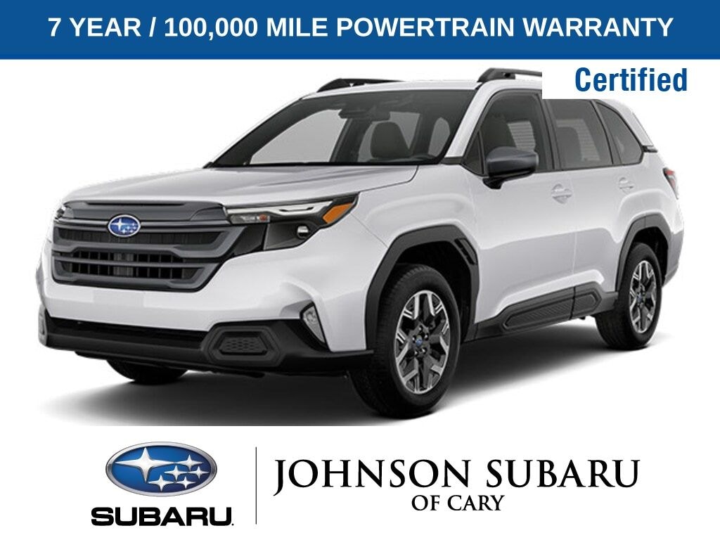 Certified. Crystal White Pearl 2025 Subaru Forester Premium AWD Lineartronic CVT 2.5L 4-Cylinder DOHC 16V
